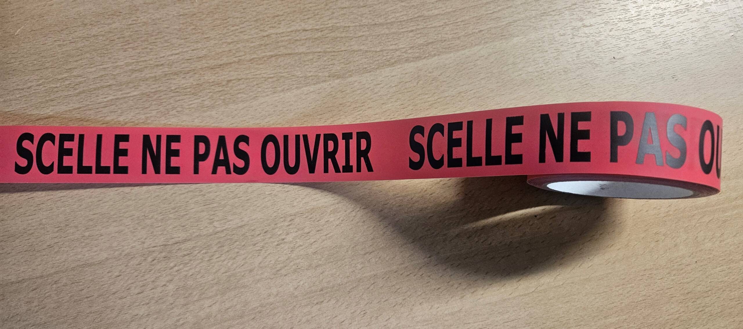 Ruban adhésif rouge  » SCELLE  NE PAS OUVRIR »
